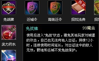 玩家可以使用“免战牌”来使自己的城堡处于免战状态