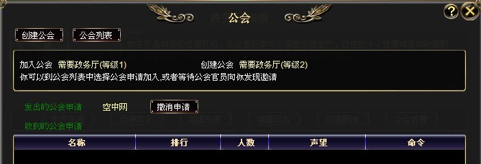 加入公会:需选择公会列表中的一个公会,进行申请,申请通过后,加入公会成功