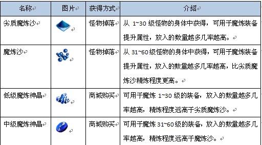 使用的魔炼材料等级越高会使魔炼成功率提升噢。初级的魔炼材料在怪物死亡后有一定几率掉落,也可以在商城里购买。
