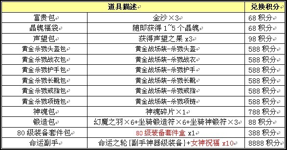 G.单笔充值满6000元:晶魄袋x35+勋章福袋x35 +飘渺之羽x15+神器洗炼石x10+幻影晶魄x2神魂碎片x5+黑暗碎片x10+幻影碎片x8 +80级装备套件盒x12+天命碎片x15+ 精灵之种x5+神秘魔晶卡x2+金砖x5