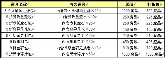 【活动内容】 活动期间,在活动期间,商城将推出多种商城道具折扣礼包,限时活动,逾期不候。