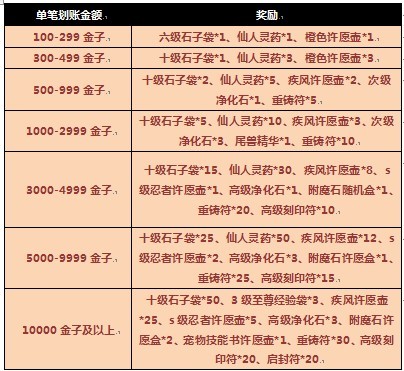 累积划账达到1888元:龙魂宝箱*1、中级净化石*2、高级净化石*2、附魔石随机盒*1