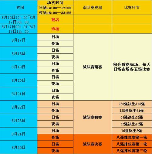 5、判定报名资格后,战队赛的玩家和战队列表,剔除出审查失败的玩家和战队,此后玩家即使升级了,所处比赛等级分组也不会再有变更。