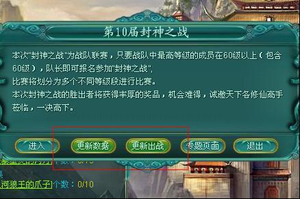 主界面左上角会出现一个按钮,点击可进入到“封神之战”的界面
