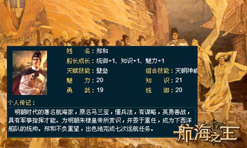 作为天朝的荣耀,国姓爷,郑和相信大家都不会太过于陌生,甚至可以说组合技能天朝神威这个名字,有大程度是出于这位历史伟人的典故。在要玩《航海之王》中,郑和的技能为壁垒。但由于属性偏弱,比起主宰技能计算的武力,为了加强存活,并利用郑和的高属性知识,打出恐怖的组合技能,统帅更值得玩家们大力发展。