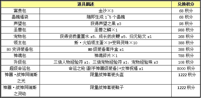 F.单笔充值满3000元:晶魄袋x18+勋章福袋x15 +飘渺之羽x7 神器洗炼石x5+神魂碎片x2+黑暗碎片x5+幻影碎片x4 +80级装备套件盒x6+天命碎片x10+神秘魔晶卡+精灵之种x2金砖x5