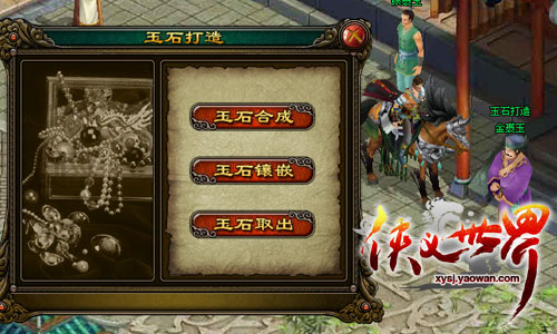 自古良才美玉,人皆爱之。为仕为侠皆喜佩玉或在兵器上镶玉以显高雅情调,虽说往往如大刀名剑都如玄铁重剑一般重剑无锋,大巧不工。但在要玩《侠义世界》中,却有那稀奇美玉可助玩家定气清神,发挥独特功效。打造系统的玉石合成功能将让玩家们能够获得更高级的玉石,并用镶嵌功能镶嵌于神兵铁甲之上,而玉石取出功能,更是能让玩家们随时更换玉石,甚至保有最珍贵的玉石,来不断打造最顶级的不败传说,从此笑傲江湖,成就武林至尊。