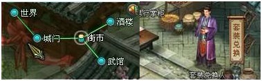 3、套装兑换人在“余杭城-街市-套装兑换人”。