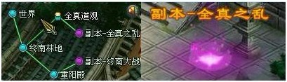 在玩家进入10级时,开放终南山地图,之后每隔十级即开放一个新的地图。每个野外地图都分布着两个副本。
