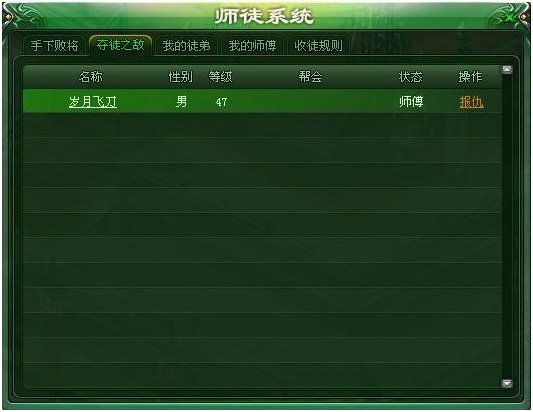 2、收徒只能从曾经败在自己手下的玩家里面寻找。