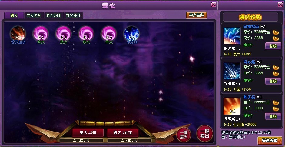 6.采集到的异火会存放于异火功能界面内,玩家可以点击主界面的异火按钮进入查看。