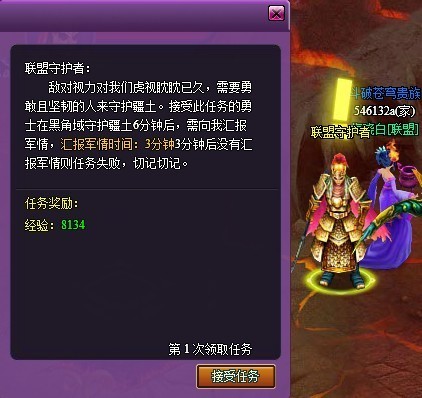 首先在黑角域的守护者npc处领取守卫疆土任务,