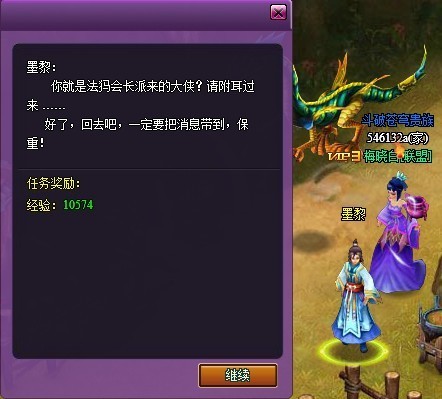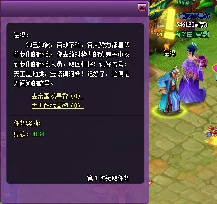 取得情报后可使用回城卷返回自己势力的帝都,找到法犸提交情报,完成任务。
