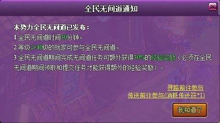 《无间道》任务每天可领取4次,任务经验奖励会随完成的任务次数而翻倍,全民无间道时间内完成该任务收益将增加30%,全民无间道开放时间—每天19:00~19:30。