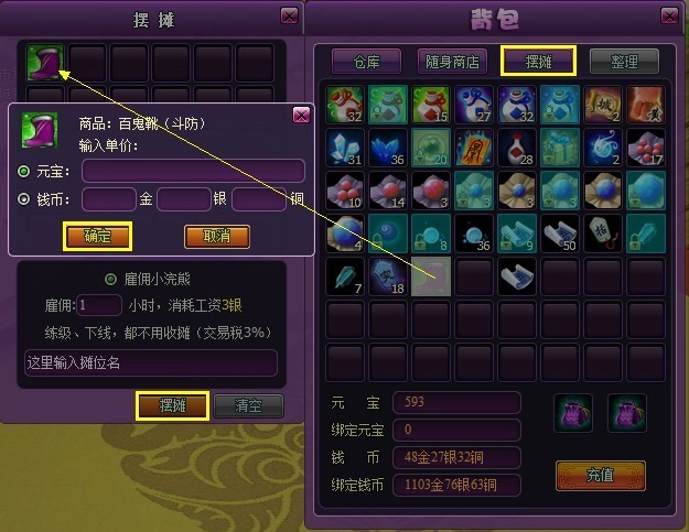 提取摆摊收益:如果有人购买了你的道具,就可以随时通过点击背包中的『摆摊』按钮,在摆摊界面的右上角的『提取』按钮处领取自己赚到的元宝或钱币。