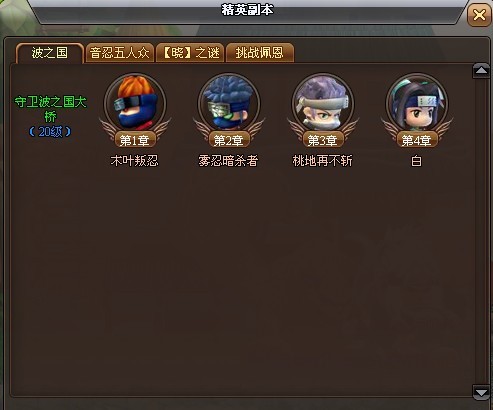 挑战副本内,为原有的15、25、55、70副本,和挑战尾兽副本;原有20、40、50、60副本将会在挑战精英副本中和您见面。