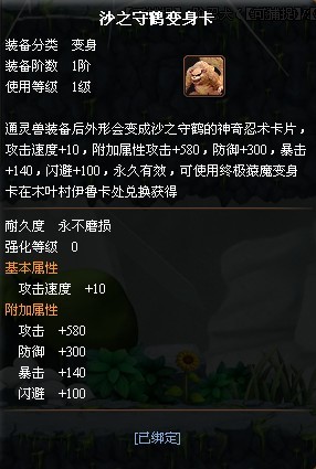 沙之守鹤变身卡属性——偏重了攻击与防御哦