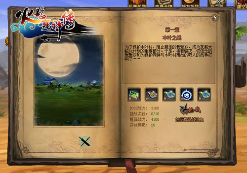 按章节排序的忍之书,其实就是要玩《火影死神传》玩家的成长之路,从下忍激斗战,通过不败的精神和忍者火一般的意志,逐渐成长为足以令人骄傲的上忍战士!在每个面对不同级别开放的章节副本中,玩家一路除怪斩将,争夺属于忍者的荣誉!