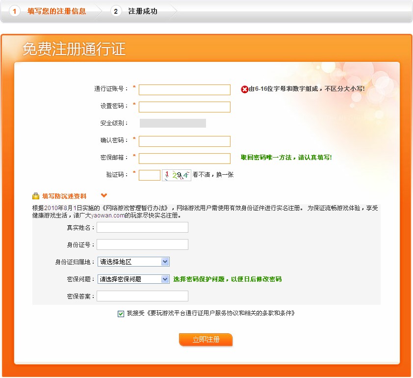 或点击链接进入要玩平台账号注册页面(http://www.yaowan.com/?m=user&action=register)。