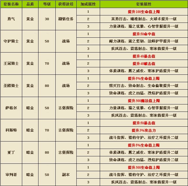 防具(护胸、护腿、披风、头盔、护手、护靴、腰带)的专属属性 |