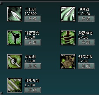 6,剑气凌霄,使用后四回合内,按当前内力值增加内功攻击力