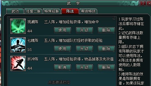 团队作战是取得胜利不可或缺的因素,游戏里也一样,通过阵法进行最大范围的团队配合,使力量达到最大,这是玩家升级或者下副本,乃至打boss的一把“利器。