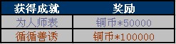 游戏开服后,所有获得“为人师表”、“循循善诱”成就的玩家,都可以通过任务获得朝廷重奖哦!