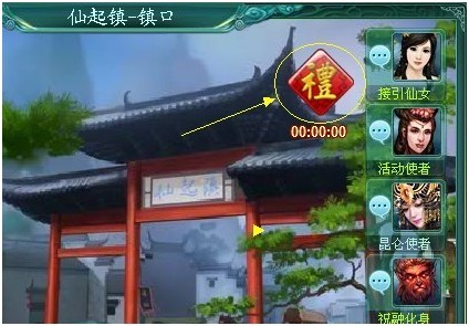 NPC地图指引:仙起镇—镇口—引路仙女。