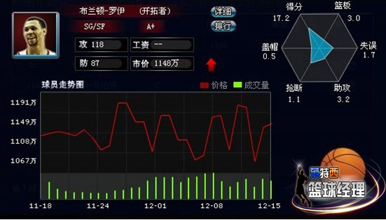 罗伊是本人比较喜欢的一名优秀的得分后卫,ROY冷静的出手,果断的抢断,致命的绝杀,陶醉的助攻,灵活的变相,精彩的扣篮,还不忘他为了队友出手动怒,他一次又一次的打磨你的神经,让你有理由相信他是个男子汉,真正的男子汉,我们有理由相信,他将是那个超越科比的人,罗伊进攻手段的花样,防守的凌厉,让球迷们大饱眼福,他是玫瑰团的团长,他是开拓青年军的核心。但是天妒英才,这个赛季初罗伊被查出了膝盖关节炎,要知道膝盖的伤病将会给一名SG的至职业生涯带来多大的伤害,而且罗伊的关节炎将无法治愈,这是球迷最为揪心的。但是罗伊并没有被伤病所击垮依然带伤出战,本赛季罗伊在开拓者出场22场在场均35.6分中内砍下17.2分3篮板3.2助攻1.1抢断0.5盖帽1.7失误1.8犯规。罗伊膝盖的伤势给他带来了很大的影响,他的数据下滑的很快,但是相信玫瑰花园之王一定康复,一定能为喜欢他的球迷贡献更多的精彩镜头。在范特西篮球经理中罗伊是1—30级玩家所钟爱的球员,如果不是因为罗伊膝盖伤势休战了几场,他的属性是不可能跌至A+的,但是罗伊在游戏中118的进攻属性是许多玩家在他受伤的情况仍然装备罗伊的一个很大的原因。现在罗伊带伤上场在范特西中的身价也是起起落落,但是这正是广大新手玩家一个非常好的机会可以乘机抄底,相信如果罗伊一旦摆脱伤病的困扰他的身价将大幅度的提升。在25级之前罗伊将会是玩家们完全可以信赖的首发得分后卫。