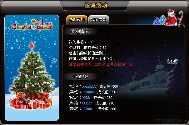 小提示:您的圣诞树随着成长值的增长会慢慢成长哦!
