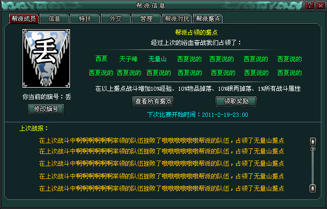 帮派新增“帮派据点”切页,这里可设置自己的帮派的旗帜,并有以下要求: