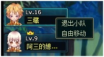 c) 队友无法自由移动,必须由队长控制整个队伍的移动。当玩家需要自由移动时需要点击自己头像选择“自由移动”或者“退出队伍”。如图: