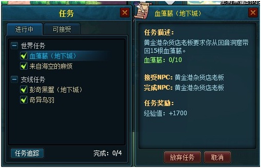 目前游戏的任务分为世界任务、支线任务,两大类。