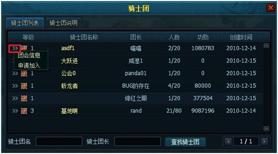 领主等级达到10级可以申请加入骑士团,骑士团官员或团长也可以直接邀请等级达到10级的领主加入骑士团。