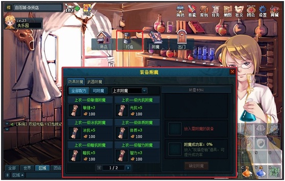d) 装备附魔有一定几率失败,失败后附魔材料消失。可以通过道具来提高打造成功率。