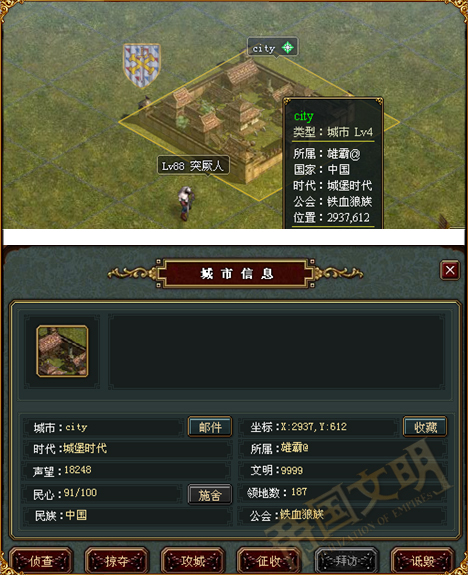 1. 选择对方中立区的一座营寨(分城),弹出分城信息框: