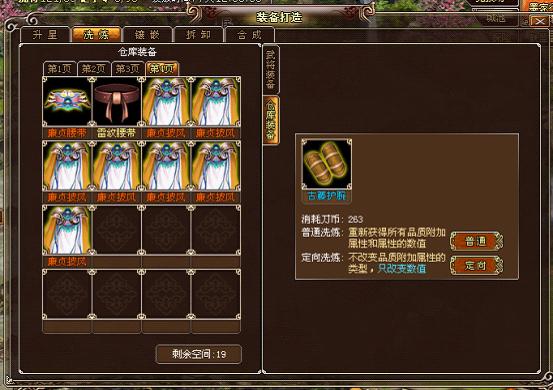 洗炼消耗:刀币,根据装备的不同,消耗的刀币数量也不同。