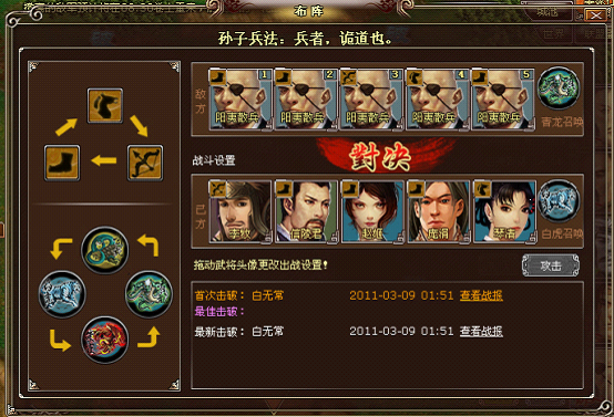 第五步,如果想知己知彼后而战的话,可以点击【战报】按钮查看上一次这个敌人被打败的情形,摸清敌人的部队实力和排列。