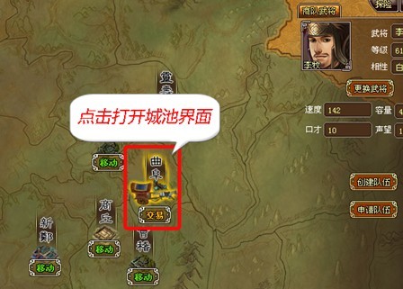 a) 点击写有【交易】的城池(就是你现在所在的城池)就可以打开城池界面