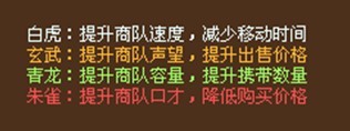 b) 组满了5个人的队伍可以获得额外的跑商属性提升,实际效果自己去跑跑看就知道了。