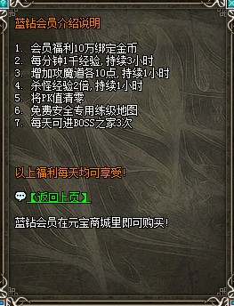 除了去会员BOSS之家外,系统每日还送3次挑战BOSS的机会,这个一定要去打,这里面的BOSS从30级开始就会爆好东西啦,比如30级的BOSS会爆狗书、盾书,35级的开始爆各职业用的42级衣服等等!