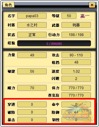 命 中:攻击时可无视对方相应的闪避值,命中数值可以抵消对手基本属性中的相应闪避值。当命中值大于闪避值时,可做到完全无视对方的闪避率。