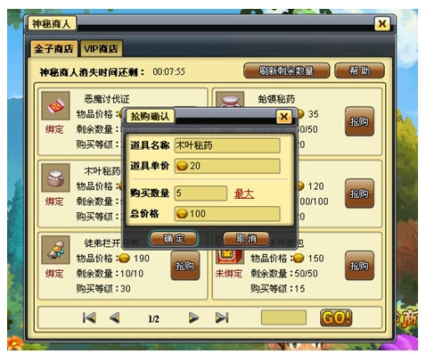神秘商人一定时间在各野外公共场景刷新,出售游戏内的稀有道具。