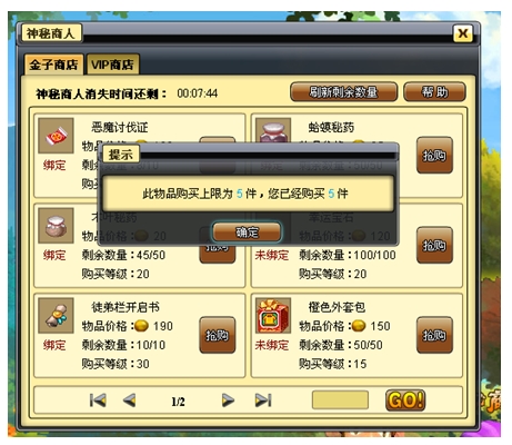 玩家购买时有数量限制和时间限制,每次购买成功后,需要等待一定时间才能继续购买。