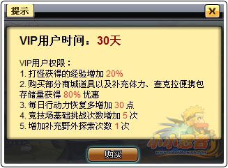 《小小忍者》VIP玩家在游戏中拥有特权例如:在所有战斗胜利后经验获得加成(可与双倍经验道具叠加);在商城购买道具价格优惠;每日赠送30点行动精力;每日额外获得5次竞技场挑战次数等。