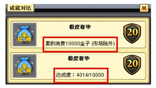 累积消费金子数量达到:10000金子(市场消费除外) |