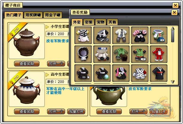 游戏中获得角色外套的途径有三种: 1、游戏角色外套可以通过竞技场界面中的抽奖按钮,经行砸罐子操作,可以获得各种不同属性品质的人物角色外套。 2、可以通过游戏中的道具合成,使用外套作为主合成物品,就有几率合成得到新的角色外套。 3、可以在交易市场上寻找其他玩家出售的各种角色外套。