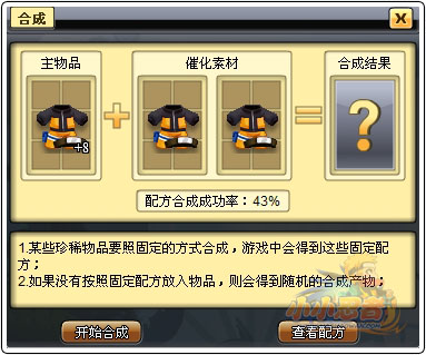 游戏中的外套可以通过合成进行强化升级,每升已经都会发生属性的增长。无论外套初始属性是什么数值,当你升级到一定的等级后,依旧可以成为强者。 将外套进行升级,其实就是将外套进行合成。合成成功后外套描述上会出现+X,表示外套目前等级。将所要提升的外套定为主物品,放入合成框中,再放入2件相同的初级+0外套,就可对主外套进行合成,合成是有成功率的,外套等级越高,合成成功率越低。