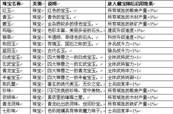 3)珍宝放入藏宝阁内,启用各种加成效果,例如“全体武将武力+2”等。